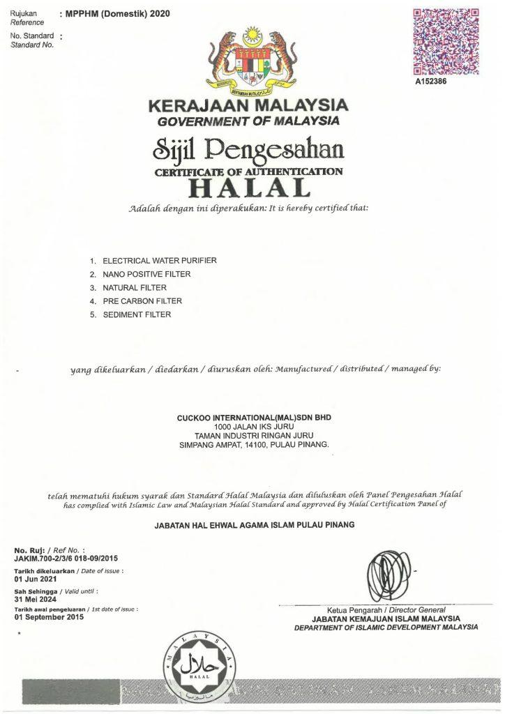 Rangkaian Penapis Air Cuckoo Menepati Dan Mengikut Piawaian World Health Organization (W.H.O)