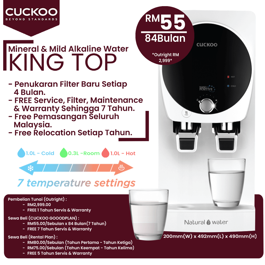 Cuckoo Menawarkan Servis Berkala Percuma Setiap 4 bulan & Warranti Sepanjang Tempoh Bayaran.